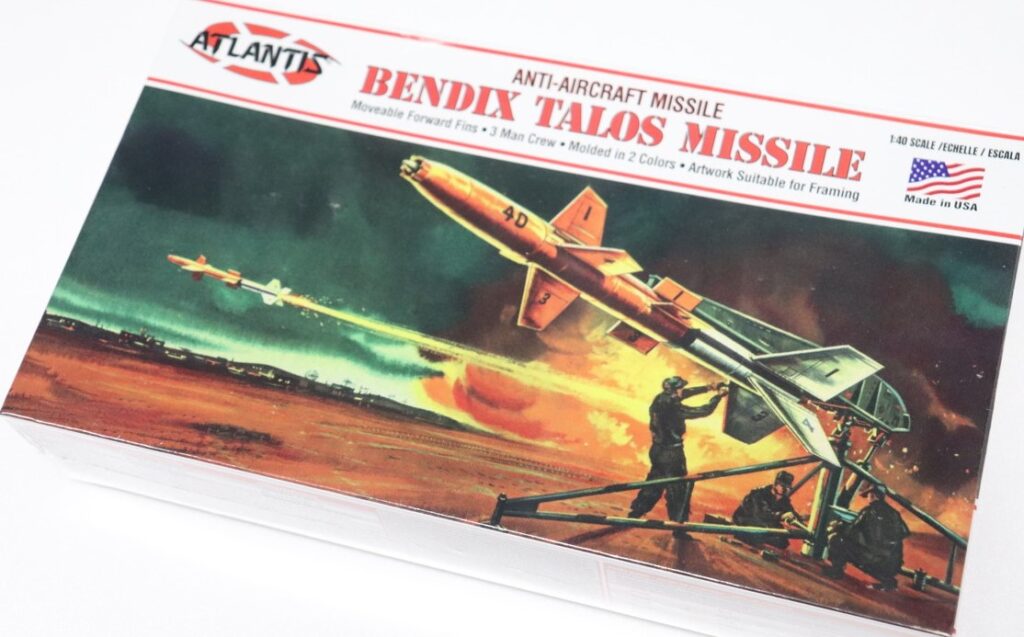 1959年に登場したアメリカ軍の対空ミサイル、タロス対空ミサイルを再現したこのキットはレベルから1957年に発売されたキットの再リリース。クルーのフィギュアも3体付いています。