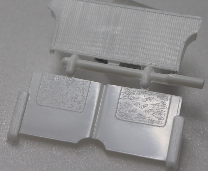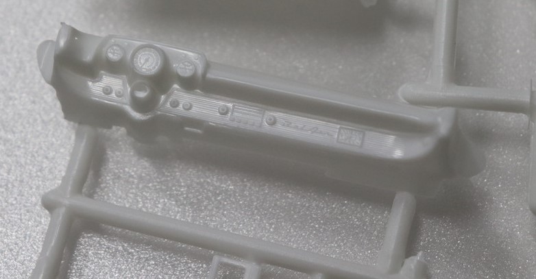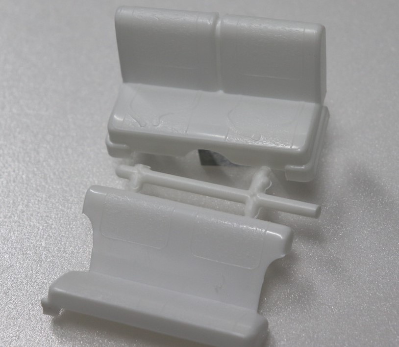 こちらはインテリアパーツ。シートです。その表面ディテールの再現が目を引きます。シートベルトも彫刻で表現しています。