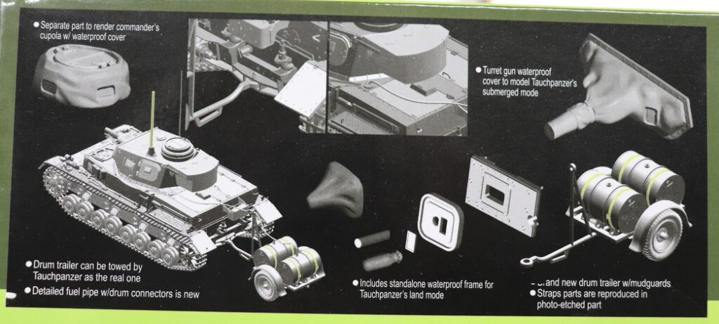 - ●1/35 WW.II ドイツ軍 IV号戦車E型 潜水戦車仕様 マジックトラック/アルミ砲身/金属砲弾/銅線牽引ケーブル/フィギュア4体付属 豪華仕様