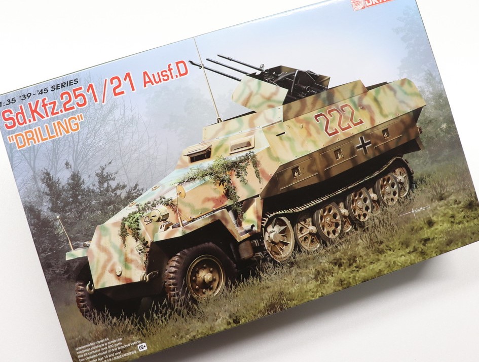 - ●1/35 WW.II ドイツ軍 Sd.Kfz.251/21 D型 対空自走砲 ドリリング アルミ製砲口/EZトラック/金属製車幅ポール/軍服&ブーツ/ボーナスデカール付属 豪華仕様