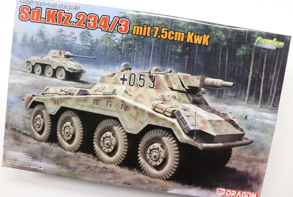 ●1/35 WW.II ドイツ軍 8輪重装甲車 Sd.Kfz.234/3 7.5cmKwK短砲身搭載型 アルミ砲身/金属車幅ポール/フィギュア4体付属 豪華仕様