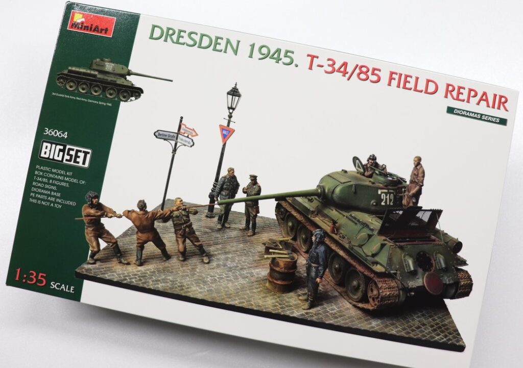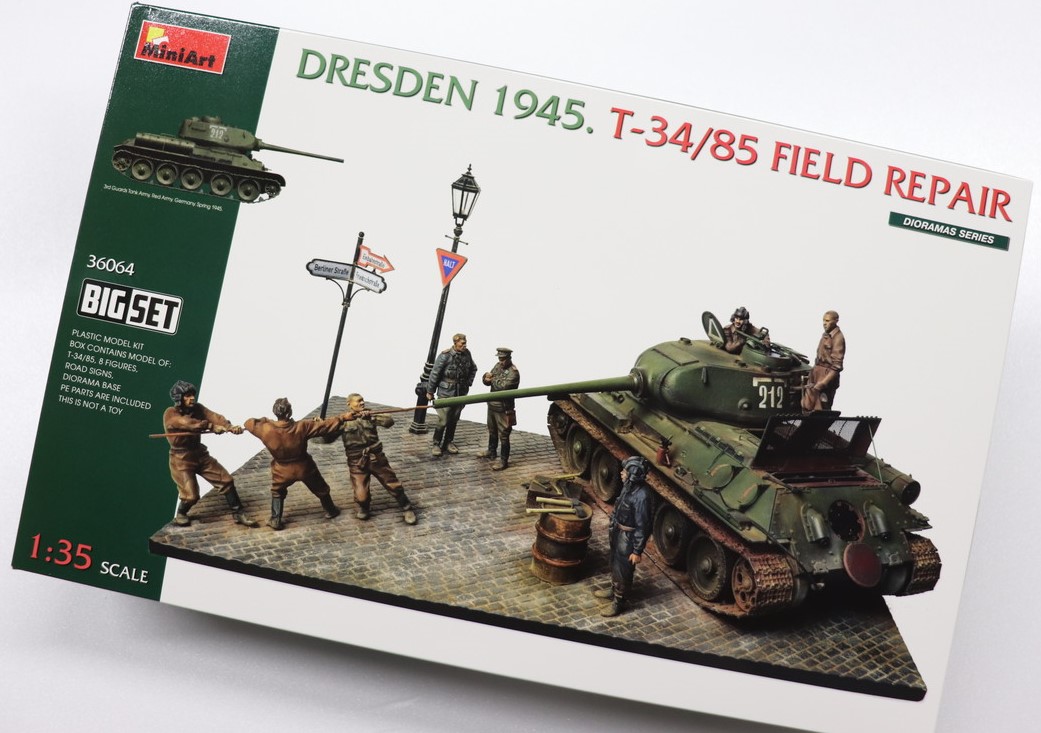 ●1/35 WW.II 対ドイツ戦最後の日 1945年 ドレスデン情景セット ソビエト軍 T-34/85 路上整備 ビッグセット