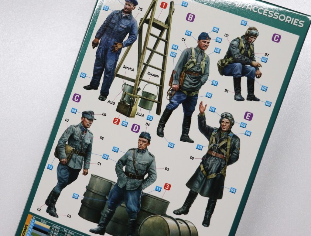 - ●1/48 WW.II フィンランド軍&ソビエト軍パイロットと地上要員フィギュアセット 6体 ドラム缶/アクセサリー付属