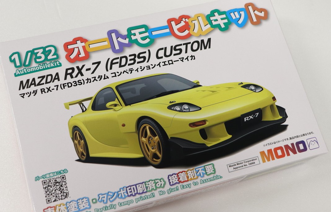 1/32 オートモービルキット マツダ RX-7(FD3S)カスタム コンペティションイエローマイカ : 2900円(税別) ITEM番号(MN10